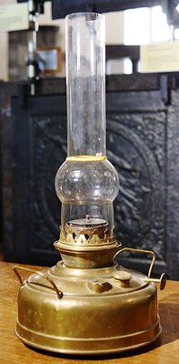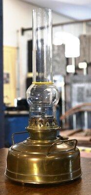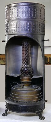 Petroleumlampe / Petroleumofen mit Flammscheibenbrenner aus Messing und Glas