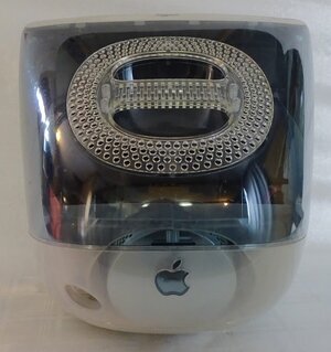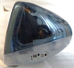 Heimcomputer der ersten iMAC-Generation. Markant ist das durchsichtige, quaderförmige Gehäuse, in das der PC, der Bildschirm, ein CD-Rom-Laufwerk und die Lautsprecher verbaut sind. iMAC-Geräte der ersten Generation wurden etwa seit Herbst 1998 in Deutschland angeboten und kosteten bei der Einführung ca. 3.000,00 DM. Die Bildschirmgröße beträgt 15". Das Geräte verfügt neben einer Kopfhörer- und Mikrophonbuchse über ein Modem sowie ein FastEthernet-Anschluss. Damit sollte das Surfen im Internet ermöglicht werden. Ein Diskettenlaufwerk war bei diesem Gerät zum Zeitpunkt der Markteinführung nicht vorhanden und würde erst bei einer der anschließenden Modellpflege zugefügt. Da das im Besitz des Freilichtmuseums Roscheider Hof befindliche Gerät im Frontbereich über ein sogenanntes Slot-In-Laufwerk verfügt, stammt es mutmaßlich aus dem Jahre 1999. Auf der unteren Gehäuseseite befindet sich ein ausklappbarer Plastikfuß, mit welchem der Blickwinkel auf den Bildschirm variiert werden kann. Im oberen Gehäuserand ist ein Trage-/Haltegriff integriert.