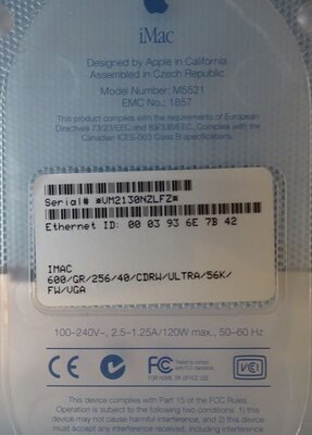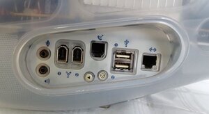 Heimcomputer der ersten iMAC-Generation. Markant ist das durchsichtige, quaderförmige Gehäuse, in das der PC, der Bildschirm, ein CD-Rom-Laufwerk und die Lautsprecher verbaut sind. iMAC-Geräte der ersten Generation wurden etwa seit Herbst 1998 in Deutschland angeboten und kosteten bei der Einführung ca. 3.000,00 DM. Die Bildschirmgröße beträgt 15". Das Geräte verfügt neben einer Kopfhörer- und Mikrophonbuchse über ein Modem sowie ein FastEthernet-Anschluss. Damit sollte das Surfen im Internet ermöglicht werden. Ein Diskettenlaufwerk war bei diesem Gerät zum Zeitpunkt der Markteinführung nicht vorhanden und würde erst bei einer der anschließenden Modellpflege zugefügt. Da das im Besitz des Freilichtmuseums Roscheider Hof befindliche Gerät im Frontbereich über ein sogenanntes Slot-In-Laufwerk verfügt, stammt es mutmaßlich aus dem Jahre 1999. Auf der unteren Gehäuseseite befindet sich ein ausklappbarer Plastikfuß, mit welchem der Blickwinkel auf den Bildschirm variiert werden kann. Im oberen Gehäuserand ist ein Trage-/Haltegriff integriert.