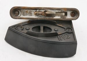 Bügeleisen (Satzeisen) mit Holzgriff: Das Bügeleisen besitzt einen ausklinkbaren Holzgriff und wird wegen des Auswechselmechanismus als Satzeisen bezeichnet. Konkret wird durch den Zug am den Knopf unter dem Holzgriff ein darunter befindlicher Haken gelöst, der einen Stift im Eisen umfasst und so den Bügel mit dem Eisen verbindet. Vor dem Bügeln wurde das Eisen auf einem Herd erhitzt und anschließend der Holzgriff aufgesetzt, um die Wäsche zu glätten. Mittels eines Druckknopfes lässt sich der Griff lösen. So war es möglich mit mehreren Eisen zu arbeiten. Reliefartige Schrift auf dem Eisen (oben) No 2 ALEXANDERWERK