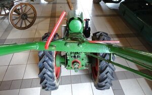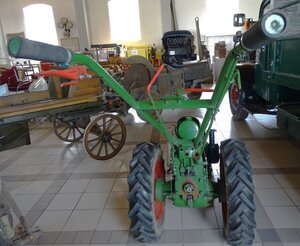 Landwirtschaftliche Maschine mit einer Fahrzeugachse. Der Schlepper wurde für Feldarbeiten entwickelt und wird mit einem von der Firma Holder entwickelten Einzylinder-Zweitakt Dieselmotor angetrieben. Einachsschlepper wurden seit den 1930er Jahren von der Firma Holder gebaut. Bei dem Modell ED10 handelt es sich um den ersten mit einem Dieselmotor betriebenen einachsigen Schlepper der Welt. Mit einem Eigengewicht von fast 400 kg und einem ursprünglich für einen Benzinmotor entwickelten Getriebe ist das Gerät zwar sehr langsam, verfügt aber über eine starke Zugkraft. Die Steuerung des Gerätes erfolgt über die langen Griffe. Dort sind das Handgas und die Handbremse angebracht. Auf der rechten Seite befindet sich eine Drehgrifflenkung, mit der die Fahrtrichtung bestimmt werden kann. Ein Richtungswechsel erfolgt durch die Auskupplung des kurveninneren Rades, sodass sich der Schlepper um dieses Rad dreht. Beide Räder verfügen über eine Trommelbremse. Mittels eines Zahnrades können diverse Anbaugeräte oder auch ein Anhänger mit dem Schlepper verbunden werden.