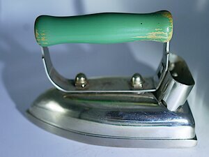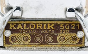 Das Elektrisches Bügeleisen des belgischen Herstellers KALORIK ist ein Haubeneisen mit Gusseisensohle und einer Haube aus vernickeltem Eisenblech. Der Holzgriff ruht auf einem Eisenband, das mit einer Schraube am Eisen befestigt ist. Der Bügel am hinteren Ende des Eisens diente dazu das noch heiße Eisen hochzustellen, damit der Untergrund unter diesem nicht anbrennen konnte. Das Bügeleisen besitzt als (männliche) Steckverbinder einen dreipoligen, sogenannten Waffel- oder Bügeleisenstecker, wie er für Heißgeräte wie Waffeleisen, Bügeleisen oder Wasserkochern verwendet wurde. Die Pole sind nur durch eine Ummantelung mit Metall geschützt. Es handelt es sich bei den Kontakten aber nicht wie bei modernen Geräten um Phase, Nullleiter und Erde. Wie auf dem Typenschild auf dem Bügeleisen ersichtlich ist, ist in der Mitte der Kontakt für den Nulleiter. Der linke Kontakt ist für 110 Volt, der rechte Kontakt ist für 220 Volt. Je nach verfügbarem öffentlichem Stromnetz konnte der zweipolige Stecker des Anschlusskabels dann links oder rechts eingesteckt werden. Ein "Umschalter" mit dem sich einer der äußeren Pole verstecken lies ist bei diesem Gerät nicht vorhanden. Dabei dürfte dieses Bügeleisen vor der Harmonisierung der Stromspannungen im Deutschen Reich und dessen Nachfolgestaaten (je nach Region gab es bis in die 1950er Jahre) für verschiedene örtliche Stromspannungen - produziert worden sein. Eine andere Alternative wäre, dass das Produkt so wie es war einfach weiterproduziert wurde oder dass es als Reisebügeleisen auch für Länder mit anderer Stromspannung geeignet war. Eine Besonderheit ist, dass sich bei diesem Bügeleisen die Kunststoffkappe erhalten hat, die auf den nicht benötigten Stecker gesteckt werden konnte und so ein "falsches Einstecken aus Versehen" verhindert hat. Typenschild: KALORIK 5021 110/130 VOLTS 220 Graphik linke Stecker - Graphik rechte beiden Stecker (Siehe Abbildung) Bügeleisen werden seit dem 17. Jahrhundert zum Glätten der Wäsche verwendet. Die ersten Bügeleisen bestanden aus einer Metallplatte und einem bügelartigen Griff aus Eisen. Daher auch der Name. Mit der Elektrifizierung der Haushalte setzten sich Elektrobügeleisen mehr und mehr durch.