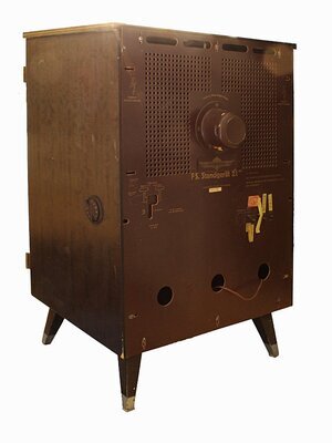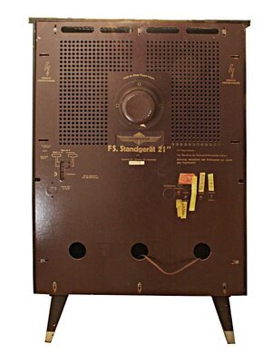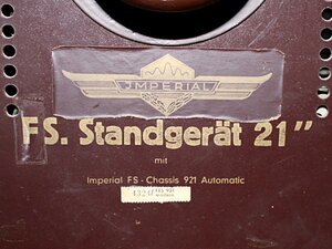 Das Fernseh-Standgerät aus den späten 1950er oder beginnenden 1960er Jahren stammt von der Tonmöbelfabrik „Kuba“ aus Wolfenbüttel. Das Unternehmen der Unterhaltungselektronik bestand von 1948 bis 1972 unter mehreren Namen. Nachdem Kuba in den ersten Produktionsjahren ausschließlich die Gehäuse fertigte und die Radio- und Fernsehchassis namhafter Hersteller verbaute, übernahm die Firma 1958 die Continental Rundfunk GmbH aus Osterode im Harz, die Rundfunkgeräte und Fernseher unter der Marke „Imperial“ herstellte. Fortan firmierte die Unternehmensgruppe unter Imperial Rundfunk und Fernsehwerk GmbH. Mit der Übernahme von Continental erwarb Kuba das nötige Know-how für die eigene Entwicklung und Produktion von Rundfunk- und Fernsehgeräten. Das hier präsentierte „Standgerät 21“ beinhaltet als Fernsehgerät das Modell 921 Automatic und wurde erstmals im Handbuch des Rundfunk- und Fernsehgroßhandels 1958/59 vorgestellt. Es kostete damals 1298 D-Mark.