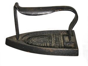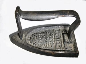 Französisches Flacheisen Marke "L.Tillet" dessen Gussmarke auf der Oberfläche des Eisens zu sehen ist. Das Eisen besitzt einen auf dem Eisen angegossenem Bügel-Griff in Nasenform. Wie häufig bei Flacheisen aus französischer Produktion ist die Oberseite des Eisens (von der Spitze bis zur Rückseite) mit dem Buchstaben R, dem von Palmenfächern eingerahmten Monogramm mit den untereinander verschlungenen Buchstaben ST, dem Schriftzug L.TILLET und der Größenangabe No 5 angebracht Das Erhitzen des Eisens auf dem Kohleofen oder in einer offenen Feuerstelle wie dem Kaminfeuer erforderte verschiedene Vorsichtsmaßnahmen, um die Bügelwäsche nicht zu beschmutzen oder sich am mit dem Eisen fest verbundenen Metallgriff zu verbrennen. Viele Büglerinnen wischten daher nach dem Erhitzen des Eisens mit einem Tuch, das sie an ihrer Schürze befestigt hatten, über die Bügelsohle. Als Hitzeschutz wurde oftmals ein dicker Handschuh oder ein Lappen, der um den Griff gewickelt wurde, verwendet.