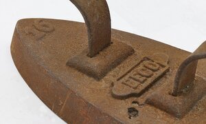Flacheisen der Marke Beco. Auf der Oberfläche des Eisens befindet sich die Gussmarke G M und an der Spitze die Ziffer 16 als Größenangabe. Das Eisen besitzt einen angeschweißten Bandeisengriff der Rheinischen Form. Das Eisen ist stark verrostet. Das leichte Flachbügeleisen gehört zu den massiven Volleisen, die aus Eisen oder Stahl geschmiedet oder gegossen und bereits ab dem 18. Jh. hergestellt wurden. Auf Grund seines geringen Gewichts und seiner flachen Sohle, die nahezu mühelos über die vorher mit Wasser besprengte Wäsche gleitet, erfreute es sich noch weit bis ins 20. Jahrhundert hinein großer Beliebtheit. Das Erhitzen auf dem Kohleofen oder in einer offenen Feuerstelle wie dem Kaminfeuer erforderte jedoch verschiedene Vorsichtsmaßnahmen, um die Bügelwäsche nicht zu beschmutzen oder sich am fest verbundenen Metallgriff zu verbrennen. Viele Büglerinnen wischten daher nach dem Erhitzen des Eisens mit einem Tuch, das sie an ihrer Schürze befestigt hatten, über die Bügelsohle. Als Hitzeschutz wurde oftmals ein dicker Handschuh oder ein Lappen, der um den Griff gewickelt wurde, verwendet.