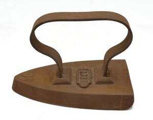 Flacheisen der Marke Beco. Auf der Oberfläche des Eisens befindet sich die Gussmarke G M und an der Spitze die Ziffer 16 als Größenangabe. Das Eisen besitzt einen angeschweißten Bandeisengriff der Rheinischen Form. Das Eisen ist stark verrostet. Das leichte Flachbügeleisen gehört zu den massiven Volleisen, die aus Eisen oder Stahl geschmiedet oder gegossen und bereits ab dem 18. Jh. hergestellt wurden. Auf Grund seines geringen Gewichts und seiner flachen Sohle, die nahezu mühelos über die vorher mit Wasser besprengte Wäsche gleitet, erfreute es sich noch weit bis ins 20. Jahrhundert hinein großer Beliebtheit. Das Erhitzen auf dem Kohleofen oder in einer offenen Feuerstelle wie dem Kaminfeuer erforderte jedoch verschiedene Vorsichtsmaßnahmen, um die Bügelwäsche nicht zu beschmutzen oder sich am fest verbundenen Metallgriff zu verbrennen. Viele Büglerinnen wischten daher nach dem Erhitzen des Eisens mit einem Tuch, das sie an ihrer Schürze befestigt hatten, über die Bügelsohle. Als Hitzeschutz wurde oftmals ein dicker Handschuh oder ein Lappen, der um den Griff gewickelt wurde, verwendet.