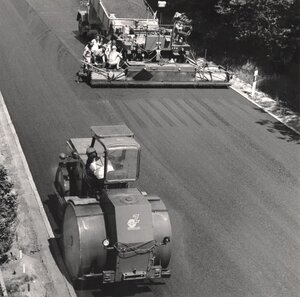 Schwarz-Weiß-Aufnahmen Straßenbau durch die Firma Zettelmeyer