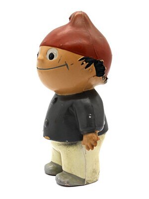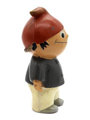 Mainzelmännchen "Fritzchen" (Serie 4) mit roter Mütze und grünem Oberteil.