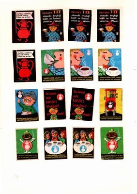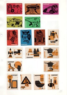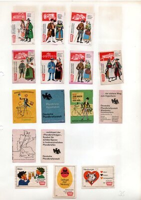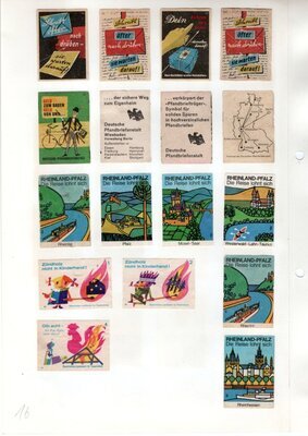 Konvolut von Werbeetiketten für Streichholzschachteln aus Deutschland. Sehr viele Firmen, Vereine, Institutionen, und der Handel erkannten und nutzten die Reichweite dieses Werbemediums. Unser Objekt enthält eine Sammlung solcher Werbetiketten, verschiedener Branchen wie Versicherungen oder Lebensmittelhandel von verschiedenen Jahrgängen. Die Darstellungen umfassen Figuren, Trachten, Wappen, Autos, Lokomotiven, Filmplakate und weiteres. Besonders originell war eine Serie des Hamburger Verkehrsverbunds, aus mehreren Etiketten konnte man einen Streckenplan zusammensetzen. Aufgeklebt auf Karton, in einem Ordner abgeheftet. Alle genannten und abgebildeten Firmennamen, Markennamen und Produktbezeichnungen sind Eigentum ihrer jeweiligen Hersteller und gesetzlich oder vertraglich geschützt. Sie dienen lediglich der Darstellung, der Beschreibung und der eindeutigen Identifikation von Museumseigentum.