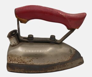 Das elektrische Bügeleisen ist ein Haubeneisen mit Gusseisensohle und einer Haube aus vernickeltem Eisenblech. Der Holzgriff ist mit einem durchlaufenden Eisenband und Hutmuttern am Eisen befestigt. Leider ist das Typenschild nicht mehr vorhanden. Das Eisen besitzt als (männliche) Stecker einen zweipoligen, sogenannten Waffel- oder Bügeleisenstecker, wie er für Heißgeräte wie Waffeleisen, Bügeleisen oder Wasserkochern verwendet wurde. Der Anschluss für das Elektrokabel ist als Stecker mit Metallummantelung ausgeführt. Das Bügeleisen konnte ausschließlich mit Wechselstrom mit 240 Volt Spannung betrieben werden. Das Bügeleisen besitzt keinen Thermostat. Bügeleisen werden seit dem 17. Jahrhundert zum Glätten der Wäsche verwendet. Die ersten Bügeleisen bestanden aus einer Metallplatte und einem bügelartigen Griff aus Eisen. Daher auch der Name. Mit der Elektrifizierung der Haushalte setzten sich Elektrobügeleisen - ab etwa 1920 - mehr und mehr durch. Das Bügeleisen erinnert von seiner Form her etwas an die früheren Ochsenzungenbügeleisen. Es besitzt als (männliche) Stecker, einen zweipoligen, sogenannten Waffel- oder Bügeleisenstecker, wie er für Heißgeräte wie Waffeleisen, Bügeleisen oder Wasserkochern verwendet wurde. Der Holzgriff ist mit einem durchlaufenden Eisenband und Hutmuttern am Eisen befestigt. Leider ist das Typenschild nicht mehr vorhanden.