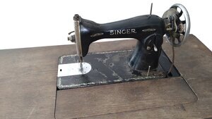 Singer Klasse 15-88, Geradestich Nähmaschine. Der Antrieb erfolgte über ein Pedal und über einen Lederriemen auf das Antriebsrad an der Maschine. Serien-Nr.: C3650982, Baujahr ab 1908. Die Nähmaschine ist im Nähmaschinentisch versenkbar und mit einer Platte zu einem Tisch verschließen. Die Platte lässt sich auf der linken Seite als Tischerweiterung einhängen. Links und rechts sind Schubladen zur Aufnahme von Werkzeugen oder Kleinteilen anmontiert. Dazwischen befindet sich ein nach vorn aufklappbares Fach, in dem Garnspulen verwahrt werden können. Als die russische Armee 1945 in Deutschland einmarschierte, requirierte sie alle Maschinen der Produktion und Dokumente als Reparationszahlung aus der Wittenberger Fabrik der Singer Werke und schaffte sie nach Russland. Daher ist eine genaue Datierung der Herstellung nicht möglich.