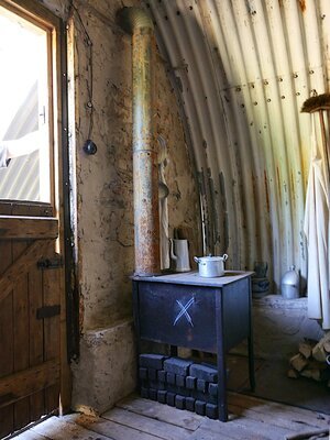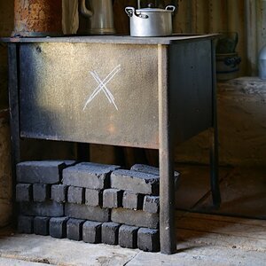 Schwarzer Herd für Bombengeschädigte aus Munitionsbehältern