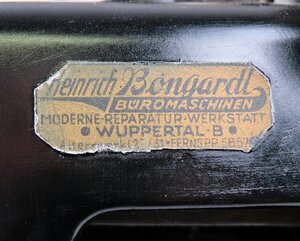 Die Firma Rheinmetall aus Sömmerda war ursprünglich ein Rüstungsbetrieb. Auf Grund des Versailler stellte die Firma nach 1918 zivile Produkte her. So auch Schreibmaschinen. Unser Objekt ist eine Rheinmetall No. 9 aus dem Jahre 1929. Auf Grund der Produktionsnummer 31591 wissen wir, dass die Maschine zu den ersten Exemplaren der neuen Modellreihe 9 gehört. Wie fast alle Maschinen dieser Zeit hat sie eine schwarze Lackierung mit dem Namenszug „Rheinmetall“ auf der Vorder- und Rückseite. Die vordere Verkleidung war ab klappbar, wodurch ein einfacher Zugang zum Typenkorb möglich war. Technisch handelt es sich um eine Typenhebelmaschine mit Vorderaufschlag und einfacher Umschaltung. Ein Bürohändler aus Wuppertal, die Firma Heinrich Burgard, lieferte die Maschine an einen Kunden.