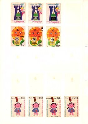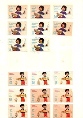 Konvolut von Werbeetiketten für Streichholzschachteln aus Deutschland. Sehr viele Firmen, Vereine, Institutionen, und der Handel erkannten und nutzten die Reichweite dieses Werbemediums. Unser Objekt enthält eine Sammlung solcher Werbetiketten der Lebensmittelbranche und der Allianz Versicherung aus verschiedenen Jahrgängen. Die Darstellungen umfassen Sehenswürdigkeiten, Musikinstrumente, Flaggen, Wappen, Autos, Werbegrafiken, Witze und weiteres. Überwiegend handelt es sich um Etiketten von Einzelschachtel sowie teilweise von Umverpackungen. Aufgeklebt auf Karton, in einem Ordner abgeheftet. Die Etiketten mit gleichen Motiven unterscheiden sich in der aufgedruckten Steuernummer. Alle genannten und abgebildeten Firmennamen, Markennamen und Produktbezeichnungen sind Eigentum ihrer jeweiligen Hersteller und gesetzlich oder vertraglich geschützt. Sie dienen lediglich der Darstellung und Beschreibung und der eindeutigen Identifikation von Museumseigentum.