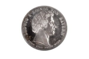 Bavaria als antikisierte allegorische Verkörperung Bayerns wird sitzend dargestellt. Zu ihren Füßen befindet sich symbolträchtig ein Hund als Zeichen der Treue, der gleichsam als Personifikation des Volkes der Säule zugeordnet ist, auf die sich Bavaria stützt. In der Hand hält Bavaria einen Zweig mit Eichenlaub, das in der griechischen und römischen Antike als Symbol der souveränen Macht, Treue und Solidität verwendet wurde sowie als militärische Auszeichnung. Ludwig bedient sich antiker Bildsprache, um das Verhältnis zwischen ihm und seinen Untertanen als eines der wechselseitigen, wenn auch klar hierarchischen, Treue und Verpflichtung zu kennzeichnen. Die Umschrift lautet: "Bayerns Treue 1830". Der Revers zeigt König Ludwig I. im Profil. Der Geschichtstaler ist als Reaktion auf die französische Julirevolution von 1830 zu verstehen, während derer es in Bayern zunächst friedlich geblieben war. Mit dem Hambacher Fest von 1832, bei dem rund 30.000 Menschen ihren Unmut kundgaben, änderte sich die Situation im Königreich. Um ein Übergreifen der Proteste aus der Pfalz ins bayerische Kernland zu verhindern, wurde die Armee entsandt. Bei den sogenannten Geschichtstalern handelt es sich um 38 Münzen, die Ludwig I. im Laufe seiner Regierungszeit (1825-1848) schlagen ließ. Mit ihnen schuf er etwas zu dieser Zeit in Europa einzigartiges. Er verfolgte dabei das Anliegen, patriotische Gefühle zu stärken und die Öffentlichkeit an das Königshaus zu binden. Die Taler reihen sich in die königlichen Denkmalstiftungen ein und entsprechen auch der zeitgenössischen Hinwendung zum Historischen, wobei ebenso aktueller landeswichtiger Ereignisse gedacht werden sollte. Die Geschichtstaler nutzte Ludwig I. gekonnt, um sich und seine Familie ins Bild zu setzen. Die Darstellungen verweisen auf die Fortschritte Bayerns unter seiner Regentschaft im Bereich der Gesetzgebung, Infrastruktur, des Handels und des Bildungswesens. Die glückliche Verbindung von Tradition und Fortschritt ergibt sich im Überblick der einzelnen Taler, die sowohl die Verbindungen zur katholischen Kirche als auch die Förderung moderner Vorhaben wie der Eisenbahn als gedenkwürdig herausheben. Ludwig verweist auf die von ihm gestifteten Denkmäler zu Ehren der bayerischen Armee sowie verdienter Persönlichkeiten des Landes, darunter Vertreter aus Kunst und Literatur, womit er sie in doppelter Weise ins Gedächtnis der Bürgerinnen und Bürger einschreibt. Die Geschichtstaler wurden mitunter auch zur Kommunikation mit den Untertanen verwendet, so bedankte sich Ludwig in monarchischer Manier mittels einer Münzprägung von 1830 für die Treue der Bayern während der französischen Unruhen. Die propagandistische Absicht, patriotische Umlaufmünzen zu schaffen, erfüllte sich nicht, da die Geschichtstaler nur in geringen Auflagen geprägt wurden und eher bei Sammlern beliebt waren und weniger im Zahlungsverkehr genutzt wurden.