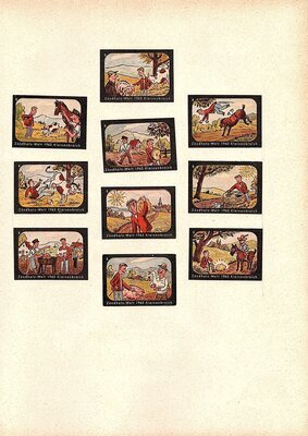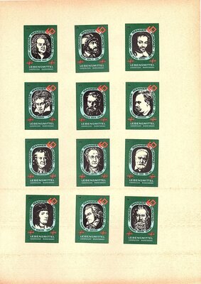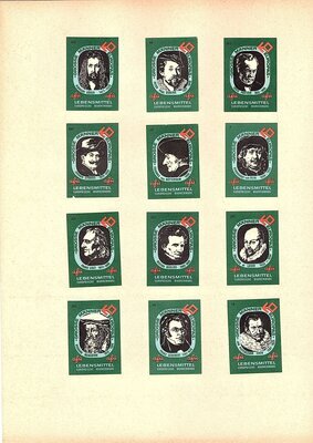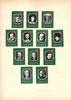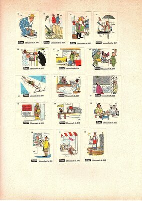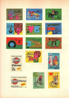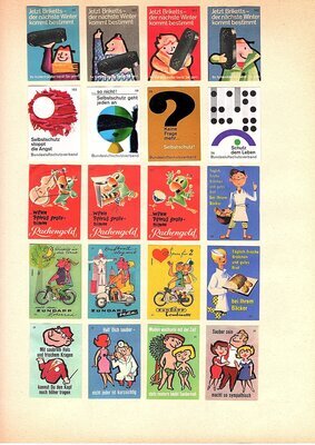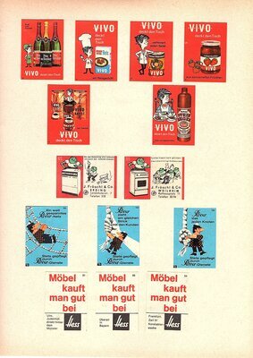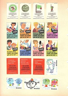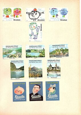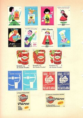 Konvolut von Werbeetiketten für Streichholzschachteln aus Deutschland. Sehr viele Firmen, Vereine, Institutionen, und der Handel erkannten und nutzten die Reichweite dieses Werbemediums. Unser Objekt enthält eine Sammlung solcher Werbeetiketten von heute noch existierenden Marken wie Edeka, Rewe, Spar und AEG sowie zahlreichen ehemals bekannten und inzwischen weitgehend verschwundenen Marken wie Tengelmann, Kaiser's Kaffee, Horten oder die Zeitschrift Quick sowie weiterer wenig bekannter Herausgeber. Aber auch die Städte Bonn und Düsseldorf sowie das Land Rheinland-Pfalz sind vertreten. Die Darstellungen umfassen Sehenswürdigkeiten, Portraits berühmter Persönlichkeiten, Musikinstrumente, Flaggen, Wappen, Autos, Werbegrafiken, Witze, Märchen und weiteres. Überwiegend handelt es sich um Etiketten von Einzelschachtel sowie teilweise von Umverpackungen. Aufgeklebt auf hellem Karton, teilweise auf schwarzem Papier; in einem Ordner abgeheftet. Alle genannten und abgebildeten Firmennamen, Markennamen und Produktbezeichnungen sind Eigentum ihrer jeweiligen Hersteller und gesetzlich oder vertraglich geschützt. Sie dienen lediglich der Darstellung, der Beschreibung und der eindeutigen Identifikation von Museumseigentum.