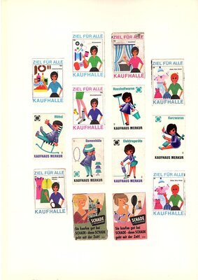 Streichholzwerbung von Rewe, Edeka, AEG, Horten u.v.a.