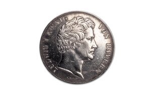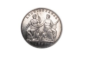 Der Geschichtstaler zeigt sitzend links eine weibliche Flussgöttin und rechts einen männlichen Flussgott als antikisierte Allegorien von Main und Donau. Die beiden Gottheiten reichen sich ihre rechten Hände, während sie mit der Linken jeweils ein Ruder halten. Als Attribute sind ihnen zwei wasserspendende Amphoren sowie etwas Schilf beigegeben. Die Umschrift lautet: ""Ludwigscanal 1846". Der Revers zeigt König Ludwig I. im Profil. Ludwig I konnte 1846 nach zehnjährigen Bauarbeiten sein ehrgeiziges Projekt, den Ludwig-Donau-Main-Kanal eröffnen, eine 172,4 km lange, schiffbare Wasserstraße zwischen Kelheim und Bamberg, die die beiden Flüsse miteinander verband. Mit seiner Überwindung von 264m Höhenunterschied und rund 100 Schleusen gelang es dem Glanzstück der Ingenieursbaukunst, die Europäische Hauptwasserscheide zu überqueren. Der Ludwigskanal nimmt damit eine besondere Stellung ein, das Transportaufkommen fiel jedoch zunehmend gering aus, da dem schmalen Kanal Konkurrenz in Form des Eisenbahnnetzes erwuchs. Bei den sogenannten Geschichtstalern handelt es sich um 38 Münzen, die Ludwig I. im Laufe seiner Regierungszeit (1825-1848) schlagen ließ. Mit ihnen schuf er etwas zu dieser Zeit in Europa einzigartiges. Er verfolgte dabei das Anliegen, patriotische Gefühle zu stärken und die Öffentlichkeit an das Königshaus zu binden. Die Taler reihen sich in die königlichen Denkmalstiftungen ein und entsprechen auch der zeitgenössischen Hinwendung zum Historischen, wobei ebenso aktueller landeswichtiger Ereignisse gedacht werden sollte. Die Geschichtstaler nutzte Ludwig I. gekonnt, um sich und seine Familie ins Bild zu setzen. Die Darstellungen verweisen auf die Fortschritte Bayerns unter seiner Regentschaft im Bereich der Gesetzgebung, Infrastruktur, des Handels und des Bildungswesens. Die glückliche Verbindung von Tradition und Fortschritt ergibt sich im Überblick der einzelnen Taler, die sowohl die Verbindungen zur katholischen Kirche als auch die Förderung moderner Vorhaben wie der Eisenbahn als gedenkwürdig herausheben. Ludwig verweist auf die von ihm gestifteten Denkmäler zu Ehren der bayerischen Armee sowie verdienter Persönlichkeiten des Landes, darunter Vertreter aus Kunst und Literatur, womit er sie in doppelter Weise ins Gedächtnis der Bürgerinnen und Bürger einschreibt. Die Geschichtstaler wurden mitunter auch zur Kommunikation mit den Untertanen verwendet, so bedankte sich Ludwig in monarchischer Manier mittels einer Münzprägung von 1830 für die Treue der Bayern während der französischen Unruhen. Die propagandistische Absicht, patriotische Umlaufmünzen zu schaffen, erfüllte sich nicht, da die Geschichtstaler nur in geringen Auflagen geprägt wurden und eher bei Sammlern beliebt waren und weniger im Zahlungsverkehr genutzt wurden.
