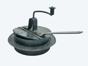 Das Gerät dient zum Rösten von Kaffe (oder entsprechendem Kaffeeersatz) und besteht aus einen runden eisernen Gefäß mit flachem Boden. Der Kaffeeröster ist so gebaut, dass er durch ein rundes Loch in der Herdplatte eines (historischen) Küchenherds in dessen Feuer gehängt werden kann. Damit er nicht als Ganzes in das Feuer fällt, ist etwa auf halber Höhe um das Gefäß herum ein Band angebracht das auf der Herdplatte aufliegt und so das Hineinfallen verhindert. Etwa 1/3 des flachen Deckels ist mit einer Klappe zu öffnen. Durch sie kann der Röster mit rohen Kaffebohnen befüllt werden. Ein in der Mitte des Gefäßes befindlicher Eisenstab läuft nach oben in eine leicht geschwungene Kurbel aus und ist mit mehreren Metallbändern drehbar am Deckel befestigt. Unten an diesem befindet sich ein Metallband mit zwei Schaufeln mit denen durch Drehen an der Kurbel die Kaffebohnen bewegt werden können. Ein ebenfalls am Deckel ist ein langer Griff befestigt. Befestigung aller Einzelteile untereinander prinzipiell mit Nieten. Alleine die ringförmige Leiste aussen an dem Gefäß ist angelötet. Keine Informationen zum Hersteller und zum Herstellungsdatum.