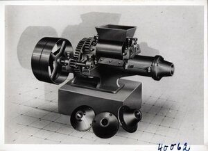 Sieben Schwarz-Weiß-Aufnahmen. Sie zeigen Strangpressen, Misch- und Knetmaschinen sowie Tonschneider. Die Aufnahmen stammen aus dem Jahre 1934. Mittels dieser Maschinen wurden Baumaterialien aufbereitet bzw. hergestellt. Im oberen Bereich ist eine trichterförmige Öffnung zum Einfüllen des Ausgangsmaterials angebracht. Seitlich erfolgt dann der Auswurf des gewünschten Produktes. Diese Bauart der Maschine bezeichnet man als "liegend". Die ersten fünf Bilder zeigen Fotografien der Maschinen. Die beiden letzten zwei Fotos beinhalten perspektivische Zeichnungen solcher Keramikmaschinen. Die Aufnahmen drei und sechs bilden mutmaßlich die gleiche Maschine ab. Am Sockel sind alternative sogenannte Mundstücke zum Anbringen an die Maschine zu erkennen. Damit konnten unterschiedliche Durchmesser des gewünschten Produktes hergestellt werden.