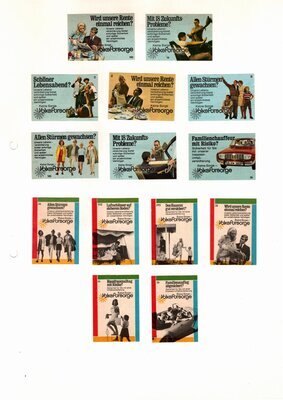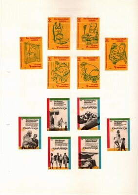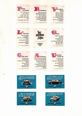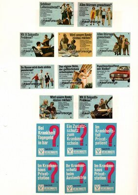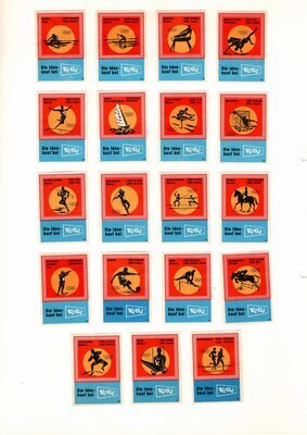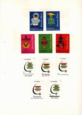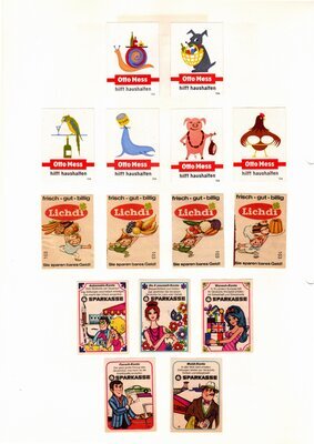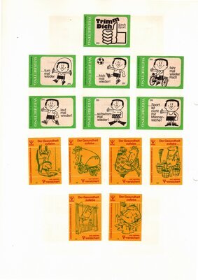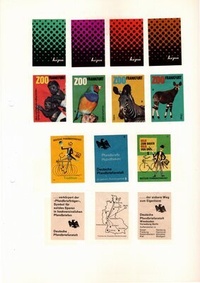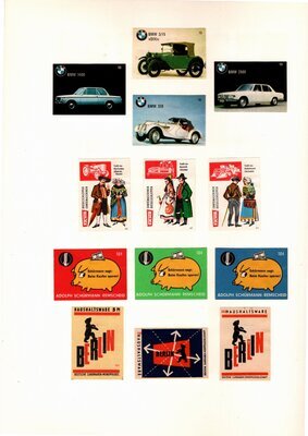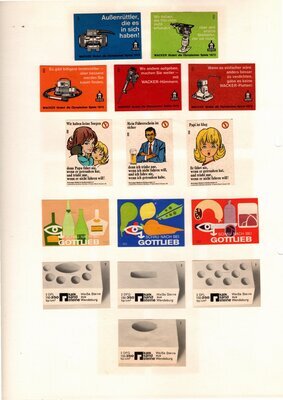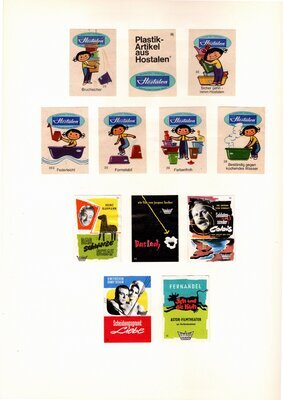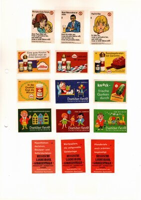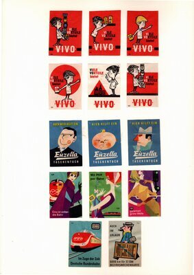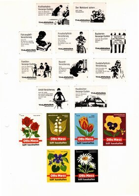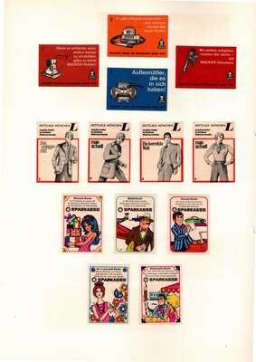 Streichholzwerbung von Volksfürsorge, BMW, Hamburger Verkehrsverbund sowie zahlreichen Handelsketten