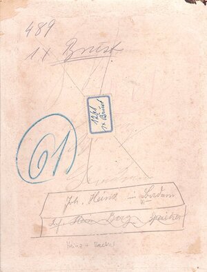 Zu sehen ist ein Brautpaar. Beide sind schwarz gekleidet. Die Braut trägt einen weißen Schleier. Die linke Hand der Braut hält einen Blumenstrauß. Der Mann hat sich bei der Frau untergehakt. In der rechten Hand trägt er einen Hut. Die Braut trägt, wie damals üblich, schwarz. Seit dem 16. Jahrhundert dominierte die Farbe Schwarz bei den Brautkleidern, vor allem in ländlichen Gegenden und bei der einfachen Bevölkerung. Und das hatte einen ganz einfachen Grund: Ein festliches schwarzes Kleid konnte viel häufiger verwendet werden als ein weißes Kleidungsstück. Unter dem Foto sind der Name und der Sitz des Fotoateliers vermerkt.