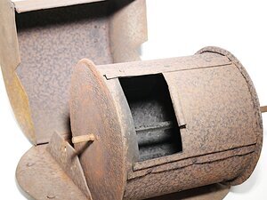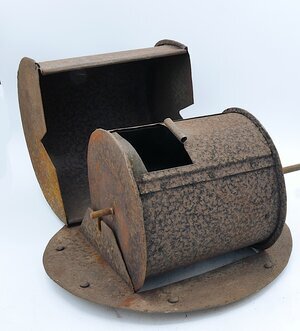 Das Gerät dient zum Rösten von Kaffee (oder entsprechendem Kaffeeersatz) und besteht aus Boden mit einem großen Loch und einer klappbaren Deckel. In dieses wird eine Trommel eingehängt die mit einer horizontal an dieser befestigten Kurbel gedreht werden kann. Durch eine mit einem Schieber verschließbare Öffnung können in die Trommel rohe Kaffebohnen eingefüllt werden und nach dem Röstvorgang wieder entnommen werden. Der Kaffeeröster ist so gebaut, dass er durch ein rundes Loch in der Herdplatte eines (historischen) Küchenherds in dessen Feuer gehängt werden kann. Damit er nicht als Ganzes in das Feuer fällt, ist etwa auf halber Höhe um das Gefäß herum ein Band angebracht das auf der Herdplatte aufliegt und so das Hineinfallen verhindert. Keine Informationen zum Hersteller und zum Herstellungsdatum.
