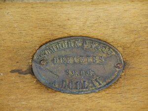 Einfache Schoßmühle aus Holz. Unterstelliges Kegelmahlwerk. Kuppel, Mahlwerk und Kurbel aus verrostetem Eisen. Diese Mühle mit reinem verrosteten Eisenblech ist ein schönes Beispiel dafür, warum die Metallteile der allermeisten Mühlen vernickelt (oder verchromt) wurden. Gedrechselter Kurbelgriff aus Holz. Schublade abgängig. Befüllung durch Klappe in der Kuppel. Messingblättchen an der Frontseite mit folgender geprägter Aufschrift: SOMBORN P.FR CE BREVETES S.G.D.G. A. Bollay Anmerkungen dazu: Somborn: Ein Ortsteil von Dortmund wie von Freigericht (Hessen) - hier vielleicht mit ganz anderer Bedeutung. Brevete: In Frankreich eine Art niederrangigeres Patent (in etwa vergleichbar mit dem Deutschen Gebrauchsmuster S.G.D.G.: Sans garantie du gouvernement - bedeutet dass die Französische Regierung das Patent ohne weitere Prüfung eingetragen hat A. Bollay - möglicherweise der Name des Herstellers