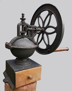 Große schwarze gusseiserne Kaffeemühle