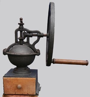 Große schwarze gusseiserne Kaffeemühle