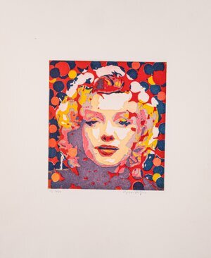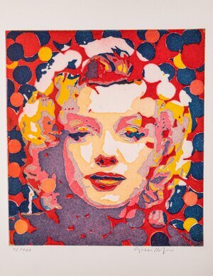 Die Druckgrafik zeigt die Hollywood- Filmschauspielerin Marilyn Monroe (1926-1962). Das Werk des Pfälzer Künstlers Gerhard Hofmann (* 1960 in Worms) besticht durch seine für die Pop-Art typische Farbigkeit. Das Porträt zeichnet sich durch eine flächige, plakative und illustrative Drucktechnik aus. Die Besonderheit der von Hofmann angewendeten Radier- und Drucktechnik besteht darin, in der Regel drei differenziert geätzte Aquatinta-Platten so anzulegen und in den Grundfarben Gelb, Rot und Blau übereinander zu drucken, dass im Ergebnis eine größtmögliche Farbvielfalt und Farbmischung entsteht. Der Künstler fertigte das Werk nach einer Fotografievorlage von Alfred Eisenstaedt an. Hofmann erhielt unter anderem 1984 den Förderpreis des Landes Rheinland-Pfalz für Grafik und 1986 den Pfalzpreis für Malerei. Die Grafik erinnert an die berühmte Siebdruckserie, die Andy Warhol 1962 kurz nach dem Tode der Schauspielerin schuf. Hofmanns Werk zitiert damit einen der größten Künstler der Pop-Art wie auch eine Ikone der amerikanischen Populärkultur.