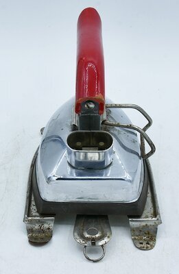 Das elektrische Bügeleisen der Marke Cloer ist ein Haubeneisen mit Gusseisensohle und einer Haube aus vernickeltem Eisenblech. Der Holzgriff ist mit einem durchlaufenden Eisenband und Hutmuttern am Eisen befestigt. Das Eisen besitzt als (männliche) Stecker einen zweipoligen, sogenannten Waffel- oder Bügeleisenstecker, wie er für Heißgeräte wie Waffeleisen, Bügeleisen oder Wasserkochern verwendet wurde. Der Anschluss für das Elektrokabel ist als Stecker mit Metallummantelung ausgeführt. Das Bügeleisen konnte ausschließlich mit Wechselstrom mit 220 Volt und 400 Watt betrieben werden. Das Bügeleisen besitzt keinen Thermostat. Bügeleisen werden seit dem 17. Jahrhundert zum Glätten der Wäsche verwendet. Die ersten Bügeleisen bestanden aus einer Metallplatte und einem bügelartigen Griff aus Eisen. Daher auch der Name. Mit der Elektrifizierung der Haushalte setzten sich Elektrobügeleisen - ab etwa 1920 - mehr und mehr durch. Das Bügeleisen erinnert von seiner Form her etwas an die früheren Ochsenzungenbügeleisen. Der rote Holzgriff ist mit einem durchlaufenden Eisenband und Hutmuttern am Eisen befestigt. Auf der Haube unterhalb des Holzgriffs befindet sich das Typenschile mit der Aufschrift: Cloer Volt 220 Watt 400 Wobei der Herstellername Cloer in Zierschrift geschrieben ist.