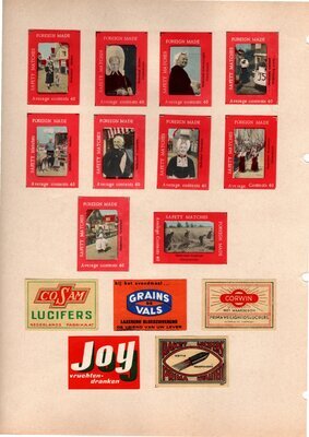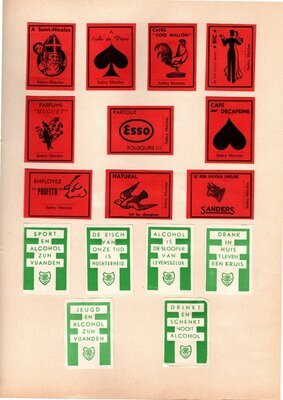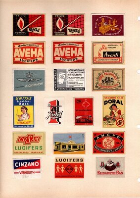 Konvolut von Werbeetiketten für Streichholzschachteln aus den Niederlanden. Sehr viele Firmen, Vereine, Institutionen, und der Handel erkannten und nutzten die Reichweite dieses Werbemediums. Unser Objekt enthält eine Sammlung solcher Werbeetiketten. Dabei handelt es sich überwiegend um Serien zu einem Themengebiet sowie einige Einzeletiketten. Aufgeklebt auf hellem Karton; in einem Ordner abgeheftet. Alle genannten und abgebildeten Firmennamen, Markennamen und Produktbezeichnungen sind Eigentum ihrer jeweiligen Hersteller und gesetzlich oder vertraglich geschützt. Sie dienen lediglich der Darstellung, der Beschreibung und der eindeutigen Identifikation von Museumseigentum.