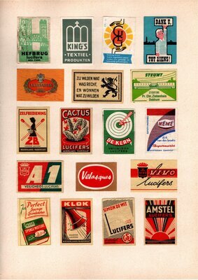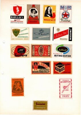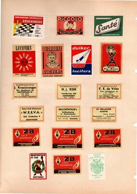 Konvolut von Werbeetiketten für Streichholzschachteln aus den Niederlanden. Sehr viele Firmen, Vereine, Institutionen, und der Handel erkannten und nutzten die Reichweite dieses Werbemediums. Unser Objekt enthält eine Sammlung solcher Werbeetiketten. Dabei handelt es sich überwiegend um Serien zu einem Themengebiet sowie einige Einzeletiketten. Aufgeklebt auf hellem Karton; in einem Ordner abgeheftet. Alle genannten und abgebildeten Firmennamen, Markennamen und Produktbezeichnungen sind Eigentum ihrer jeweiligen Hersteller und gesetzlich oder vertraglich geschützt. Sie dienen lediglich der Darstellung, der Beschreibung und der eindeutigen Identifikation von Museumseigentum.
