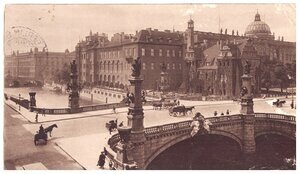 Die Brosche ist auf einer Brücke aufmontiert. In der Mitte befindet sich eine große achtblättrige Blüte und auf den Außenseiten der Brüche zwei achtblättrige kleine Blüten. Auf der Rückseite der Brücke ist noch die Befestigungsmöglichkeit für eine ca. 2,8 cm vorhanden.