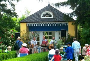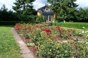 Noch während der Anlegung des Rosengartens im Jahr 1978 wurde das Museum auf ein biedermeierliches Gartenhaus, den Maret Pavillon aus Trier aufmerksam. Das fast quadratische Häuschen wurde 1830 im Garten des Trierer "Marzipan- und Chocolate-Fabricanten" Johann Wilhelm Maret (1799 - 1848) erbaut. Er gehörte zum wohlhabenderen Bürgertum der Stadt, und man kann sich vorstellen, wie sich hier an lauen Sommerabenden das gesellschaftliche Leben abspielte. Im Jahr 1978 sollte der Pavillon der Geschäftserweiterung eines inzwischen hier eingezogenen Oberbekleidungsgeschäfts zum Opfer fallen. Der Bagger stand schon bereit, als das Freilichtmuseum von einem aufmerksamen Zeitgenossen benachrichtigt wurde. Das Gebäude wurde schnell abgebaut und stand schon im nächsten Frühjahr im Rosengarten an seinem neuen Platz.