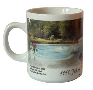 Zur Erinnerung an 1111 Jahre von Bad Bodendorf wurden im Jahr 2004, in limitierter Auflage, Tassen mit Motiven von Bad Bodendorf herausgegeben. Finanziert wurde die Aktion durch Sponsoring von Unternehmen im Ort durch die Dorfgemeinschaft aufgelegt. Diese Tasse, die dritte in der Serie von fünf Tassen, zeigt das Thermalfreibaden von Bad Bodendorf. Das Bild und die Schrift sind mit einem Abziehbild aufgebracht und eingebrannt.