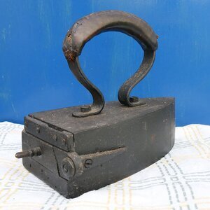 Flachbolzenbügeleisen / Kasteneisen mit Ledergriff