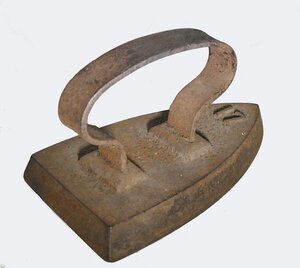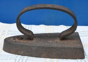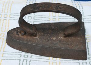 Flachbügeleisen mit runder Spitze, angeschweißtem Eisenbügel im Rheinischen Stil und gerader und flacher Oberseite. An der Spitze des Eisens befindet sich die Zahl (Größenangabe) 3. Es handelt sich um ein einfaches Flacheisen, das auf der Herdplatte oder an einem Bügeleisenofen erhitzt werden musste. Das Flachbügeleisen gehört zu den massiven Volleisen, die aus Eisen oder Stahl geschmiedet oder gegossen und bereits ab dem 18. Jh. hergestellt wurden. Das Eisen hat eine im Vergleich zu vielen anderen Flacheisen mit 2,5 cm eine relativ dicke Platte und damit auch ein nicht unerhebliches Gewicht. Das Erhitzen auf dem Kohleofen oder in einer offenen Feuerstelle wie dem Kaminfeuer erforderte verschiedene Vorsichtsmaßnahmen, um die Bügelwäsche nicht zu beschmutzen oder sich am fest verbundenen Metallgriff zu verbrennen. Viele Büglerinnen wischten daher nach dem Erhitzen des Eisens mit einem Tuch, das sie an ihrer Schürze befestigt hatten, über die Bügelsohle. Als Hitzeschutz wurde oftmals ein dicker Handschuh oder ein Lappen, der um den Griff gewickelt wurde, verwendet.