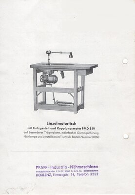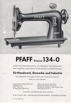 Das s/w Werbeblatt besteht aus 4 Seiten im DIN A 5 Format. Beworben wir das Modell Pfaff 134 -0 mit allen Unterklassen. z.Bsp: 134-0-6 oder 134-0-28 (Spezialmaschinen zur Herstellung von Hosenträger) oder 134-0-35 (zur Herstellung von Oberbekleidung) usw. Die Zielgruppe war das Handwerk, das Gewerbe und die Industrie. Der Leser erfährt die Vorteile dieses Maschinentyps, seine technischen Finessen und die Verwendung von Zubehör, wie den Einzelmotor-Tisch mit Holzgestell, oder den Elektromotor. Ausgegeben wurde der Prospekt von der Pfaff Verkaufsstelle in Koblenz, Firmungsstraße 14.