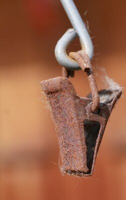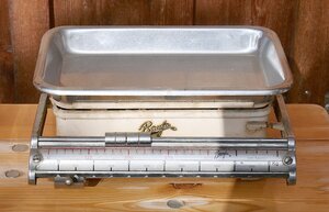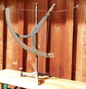 Waage für Gegenstände bis 500g. Die (leichten) Gegenstände konnten an der Klammer ganz rechts oben angehängt werden. Die Funktionsweise der recht empfindlichen Waage ist die einer klassischen Briefwaage im XXL-Format.