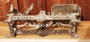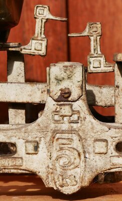 Tafelwaage nach Joseph Béranger, genannt Schnabelwaage, im Design des Art déco. In der Mitte steht in einem Wappenschild "5 kg", was die Angabe des Höchstgewichts das diese Waage wiegen konnte bezeichnet. Rechts befindet sich eine Halterung für die original erhaltene Schütte, links eine Plattform auf die die Gewichte gestellt werden konnten. In der Mitte der Waage befinden sich zwei gegenüberliegende Vogelköpfe, welche an der Halterung der Waagschalen befestigt sind und bei gleicher Schnabelhöhe die Nullstellung (Gleichgewicht) der Waage anzeigen können. Eine Tafelwaage unterscheidet sich von einer einfachen Balkenwaage durch die Gestänge im Inneren das bewirkt, dass das Moment am Waagebalken von der Position der Gewichte auf der Schale unabhängig ist. Auch werden Schrägstellung als auch Standortbewegungen bei der Béranger-Waage besser kompensiert, was die Nutzungsmöglichkeiten der Tafelwaage wesentlich erweitert.