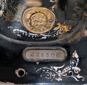 Unser Objekt ist eine Nähmaschine der Firma Wertheim aus Frankfurt. Die eingearbeitete Produktionspalette trägt als Seriennummer S 29500 (s.Bild) Zu dieser Nummer konnten wir jedoch keine verlässliche Information bzgl. Modell und Baujahr finden. Möglicherweise deutet das S auf einen Singer Nachbau aus der Zeit um 1900 hin. Verziert ist das Modell mit goldfarbenen Ornamenten und dem beiderseitigem Schriftzug „WERTHEIM“ auf dem Maschinenarm. Der Antrieb erfolgte ursprünglich über einen Handantrieb, der leider nicht mehr vorhanden ist. Technisch gesehen, handelt es sich um eine Schwingschiffchen-Geradstich-Flachbett-Nähmaschine mit Handantrieb.
