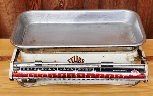 Stube Laufgewichtswaage Laufgewichtswaagen sind asymmetrische Balkenwaagen. Dieses seit der römischen Schnellwaage bekannte Prinzip wurde in den Laufgewichts-Brückenwaagen weiterentwickelt. Mittels Verschieben der Gewichte auf der mit einer Messskala ausgestatteten Brücke kann das Gewicht des Wiegeguts ermittelt werden. Die Waage ist dann im Gleichgewicht, wenn der rechts an der Brücke angebrachte Marker auf gleicher Höhe wie der an der Waage fest angebrachte Marker ist. Die Waage ist bis 10,5 kg belastbar. Die Waage ist größtenteils weiß lackiert und steht auf 4 Füßchen. Die Schale, die Brücke und die Gewichte sind verchromt. An der Vorderseite der Waage und rechts an der Brücke ist das Logo des Herstellers angebracht. Die Gewichtsskalen sind in weißer Schrift angebracht. Bei der Grobgewichtsskala auf rotem Grund, bei der Feineinstellungsskala auf schwarzem Grund. Die Gewichtsmessung erfolgt folgendermaßen: Die Schale wird mit dem Wiegegut gefüllt und drückt auf die unterhalb innerhalb des Gehäuses der Waage befindlichen Mechanik. Die Brücke klappt links nach unten und rechts nach oben. Das untere (große) Gewicht dient nun der "Grobeinstellung". Im Verlauf des Wiegens wird dieses so weit nach rechts verschoben, dass die Leiste mit der Skala gerade nicht nach rechts kippt. Das Gewicht lässt man nun bei der Aussparung der letzten davorliegenden Groß-Maßeinheit einrasten. Auf einer Schiene darüber befinden sich zwei weitere kleinere Gewichte. Das linke Gewicht dient beim Wiegevorgang zur bis auf 5 g genauen Feineinstellung. Das rechte Gewicht dient zur Eleminierung der Tara. D.h. mit diesem wird die Waage in das Gleichgewicht gebracht, wenn die anderen beiden Gewichte auf 0 stehen und auf der Waage ein Behälter steht in den das Wägegut eingefüllt wird, und der nicht mit gewogen werden soll. Die Firma Richard Stube, Herstellerin der Waage wurde 1932 in Gevelsberg gegründet und stellte Baubeschläge, Waagen und Küchenutensilien her. Die bekanntesten Produkte sind wohl die mechanischen Küchenwaagen, wie hier im Bild, die in der vordigitalen Zeit in vielen Haushalten zu finden waren. Teilweise waren die Waagen auch mit einem Aufsatz zum Wiegen von Babys ausgestattet. In den 2000endern stellt die Firma die Produktion ein.