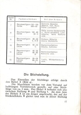 Gebrauchsanweisung für die Pfaff Bogenschiffnähmaschinen 11 und 12 im Postkartenformat. Auf insgeamt 30 Seiten wir der Gebrauch und die Pflege der Maschine detailliert beschrieben. Mit 22 Fotos bzw. grafischen Zeichnungen wird der Text unterstützt. Auf den letzten Seiten gibt es noch Hilfestellungen bei auftretenden, kleinen Fehlern. Auf der Rückseite des hellbraunen Umschlag findet sich noch ein Bild der Fabrik in Kaiserslautern und ein Garantieschein.