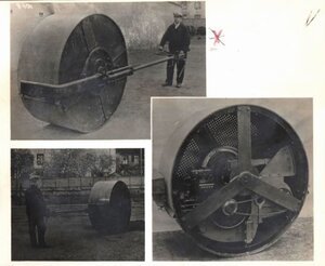 Schwarz-Weiß-Fotografien einer selbstfahrenden Handwalze