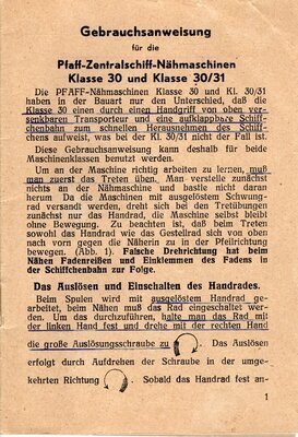 Gebrauchtsanleitung für Nähmaschine Pfaff Mod. 30 - 31