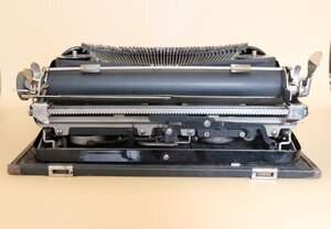 Bei unserem Objekt handelt es sich um eine Typenhebelschreibmaschine. Wie der Name schon sagt, wird über einen Hebelmechanismus, die ausgewählte Type auf die Walze geschlagen. Ferner verfügt die Maschine über eine Wagenumschaltung. d.h. beim Betätigen der Umschalttaste erfolgt ein Anheben des Wagens wodurch von Klein- auf Großbuchstaben umgeschaltet wird. Ausgestattet ist das Die Torpedo 14 mit der QWERT Tastatur und einer manuellen Bandumschaltung die noch per Hand erfolgt. Einer Rücktaste, Farbumschaltung, und einstellbarem Zeilenvorschub. Transportiert wir die Schreibmaschine in einem Koffer aus Sperrholz, der mit schwarzem Textilpapier bezogen ist. Hinter der Schreibwalze befindet sich der Schriftzug „TORPEDO“ Die Maschine befindet sich in einem reparaturbedürftigen Zustand. Der Seilzug ist gerissen, der Farbumschalter defekt und die Bodenschrauben ausgerissen.