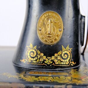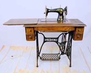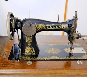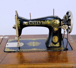 Unser Objekt ist eine Nähmaschine von Singer, Modell 15 D. (Das D steht für Deutschland) Hergestellt ca. 1912 unter der Seriennummer 1.101.706 in Wittenberge/Elbe. Das Modell 15 D war eine sehr erfolgreiche Maschine, robust, leichtgängig und langlebig. Sie wurde in verschiedenen Ausführungen produziert. Unser Modell ist in einen furnierten Nähtisch mit 4 Schubladen, zur Aufnahme von Nähutensilien, integriert . Die Maschine ist versenkbar und hat ein Untergestell aus Gusseisen mit dem Namenszug SINGER in der Mitte und dem Singer Logo auf beiden Seitenteilen. Der Maschinenarm und die Grundplatte haben eine schwarze Farbe. Aufgelockert durch goldfarbene/bunte Verzierungen und dem beiderseits angebrachten Schriftzug SINGER. Der Antrieb erfolgt über ein Fußpedal und Keilriemen. Dieser Maschinentyp hatte als Standard bereits eine Vorrichtung zum Anbau eines Elektromotors. Im Ruhebetrieb wird die Maschine durch einen klappbaren Deckel verschlossen. Zum Arbeiten wird der Deckel aufgeklappt und vergrößert so die Arbeitsplatte um fast das Doppelte. Technisch handelt es sich Geradstich-Flachbett-Nähmaschine mit Zentralspule.