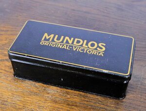 Die Firma Mundlos aus Magdeburg existierte seit 1863. Unser Objekt, eine „Mundlos Original-Viktoria“ mit der Fabriknummer 1.722.523. Lt. Packzettel wurde sie im Mai 1935 an Herrn Lehrer, Joh. Grisar aus Ludweiler b. Völklingen, Käsbergstr(Neubau), ausgeliefert. Das Modell ist versenkbar und in ein spezielles Vitrinenmöbel eingebaut. (lt.Lieferschein: Ausstattung 28H). Die Vitrine ist in Eiche furniert, die vorderen Türen in Nussbaum. Die Nähmaschine ist schwarz lackiert und trägt auf dem Maschinenarm beiderseits den Firmennamen. Die Grundplatte ist mit einem rundum laufenden, goldfarbenen Muster verziert. Angetrieben wir die Maschine durch einen Tretmechanismus, jedoch ist die Anbaumöglichkeit eines E Motors ist bereits vorhanden. Die im Schrank integrierten Schubladen beinhalten noch einige Ersatzteile. z Bsp. eine Blechschachtel, innen und Außen mit „Mundlos“ Werbung bedruckt (s. Bild), mehrere Nadelsätze Nr. 705, eine Original Gebrauchsanweisung der Maschine (s. Link) ein Original Packzettel von 1935, ein „Garantie-Wertsiegel“ mit einer Auflistung internationaler Auszeichnungen und eine funktionsfähige Nähmaschinenbeleuchtung. Technisch handelt es sich um eine Geradstich, Flachbett Nähmaschine und Zentralspule.
